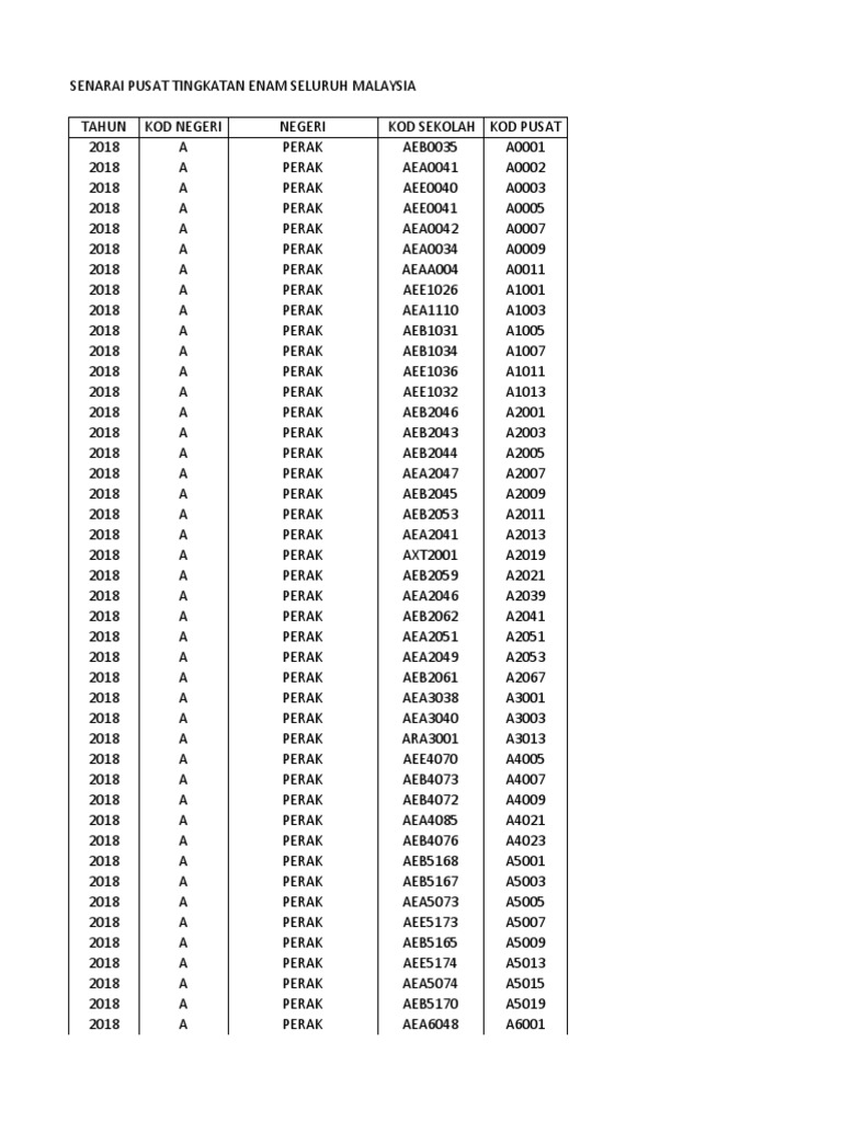 Senarai Pusat Tingkatan Enam Tahun 2018 Latest Pdf Selat Malaka